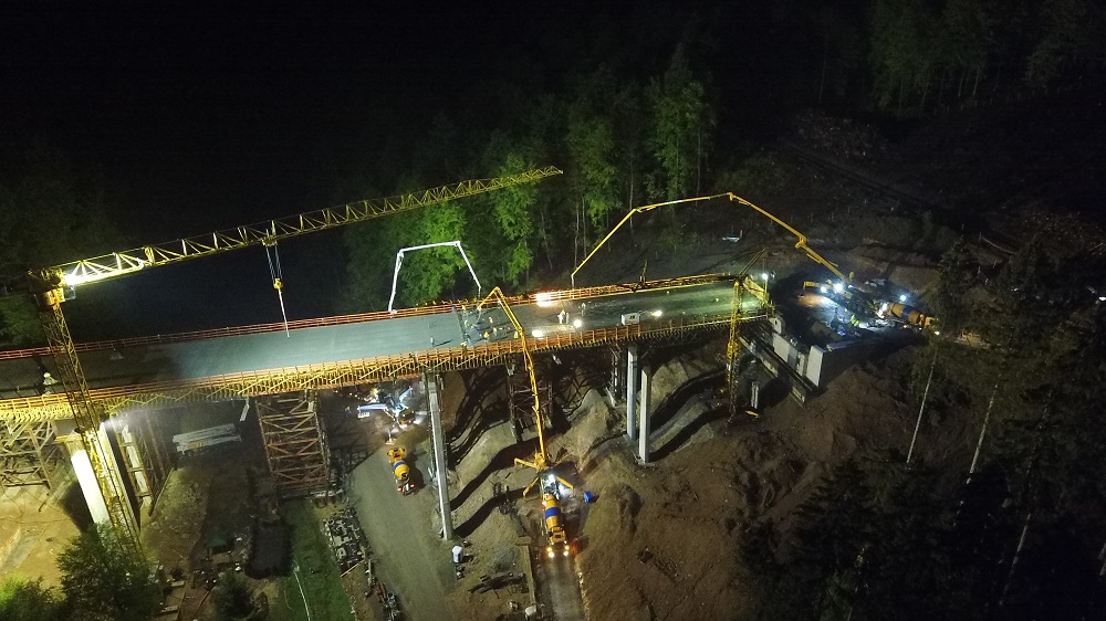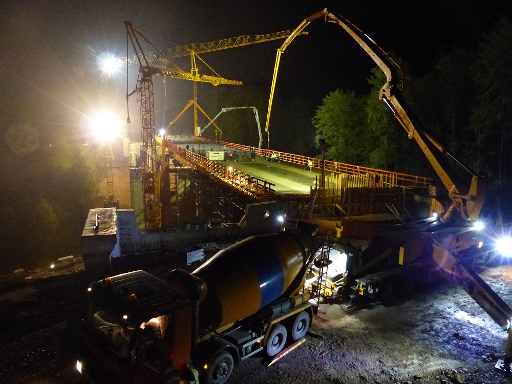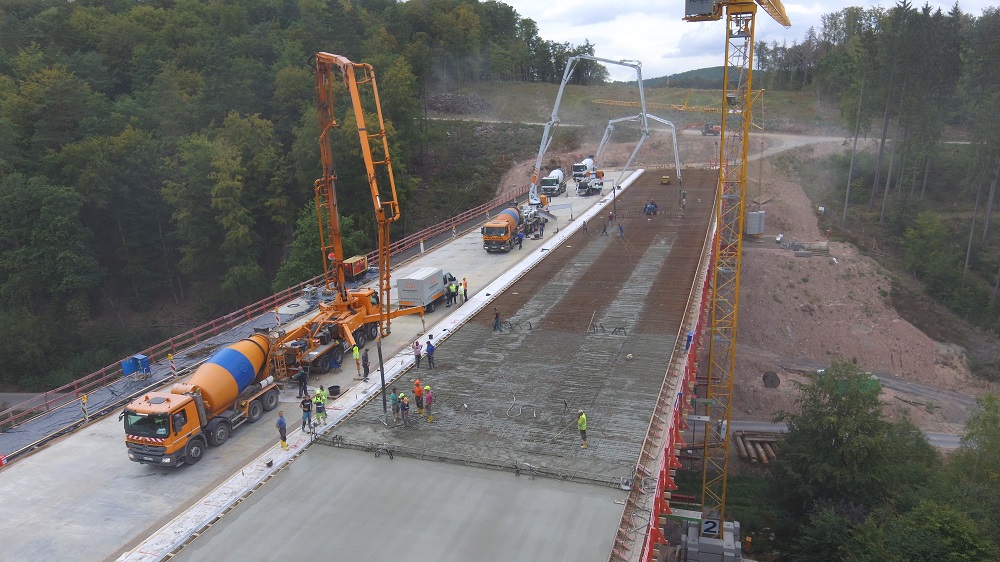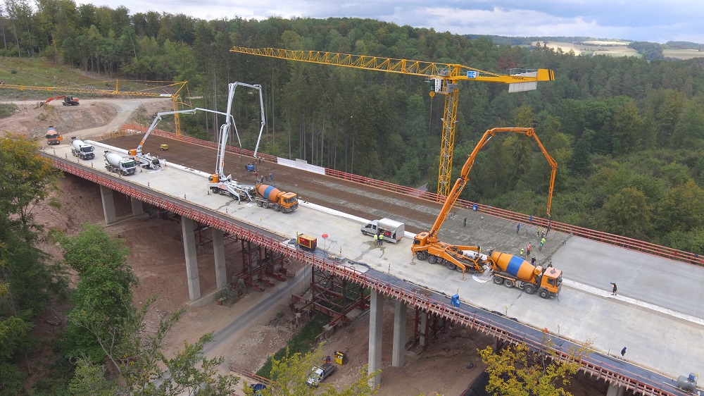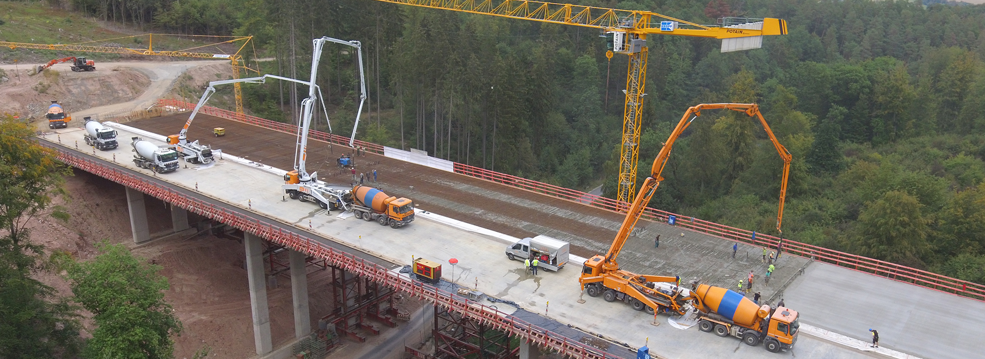 Überbau mit 2.100 m³ am Stück, 3 Betonpumpen (36 - 61 m)